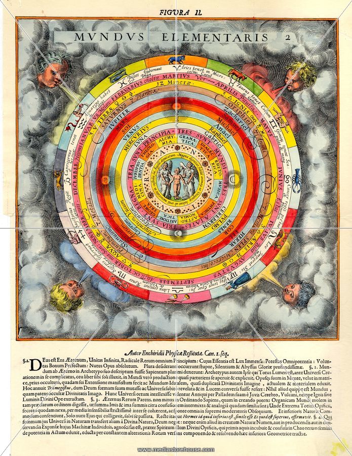 外側の円から黄道12宮、一年12ヶ月、人体の器官、金属、鉱物、天使、錬金術的…